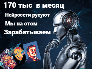 170 тыс в месяц с помощью нейросетей на рисунках. Нейросети создают картинки и рисунки, мы их реализуем на различных сервисах и на этом зарабатываем деньги.